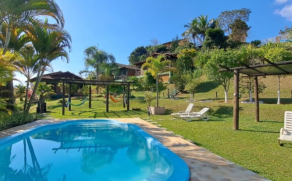 Hoje nela funciona uma linda POUSADA com 13 anos de construção e muito bem ranqueada na internet: 9,4/10 na BOOKING.COM e 4,7/5,0 no GOOGLE, porém este versátil imóvel pode ser destinado à LOCAÇÃO DE CHALÉS POR TEMPORADA (AIRBNB), RESIDÊNCIA PARTICULAR, CASA DE CAMPO, VILA DE CHALÉS, CONDOMÍNIO FAMILIAR, CLINICA DE ESTÉTICA, SPA, ESPAÇO DE EVENTOS e o que mais a sua criatividade alcançar!